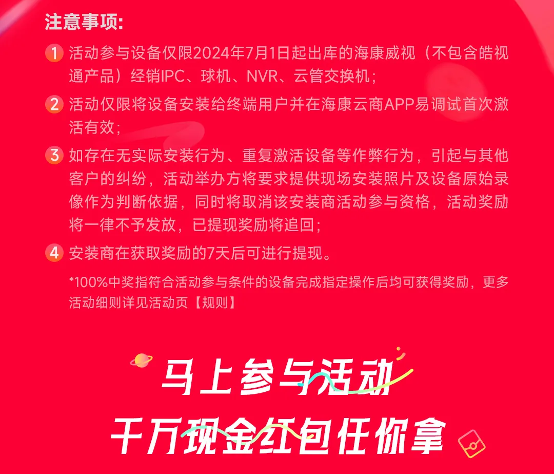 福利狂欢不停歇!装海康设备,现金红包畅享今夏!