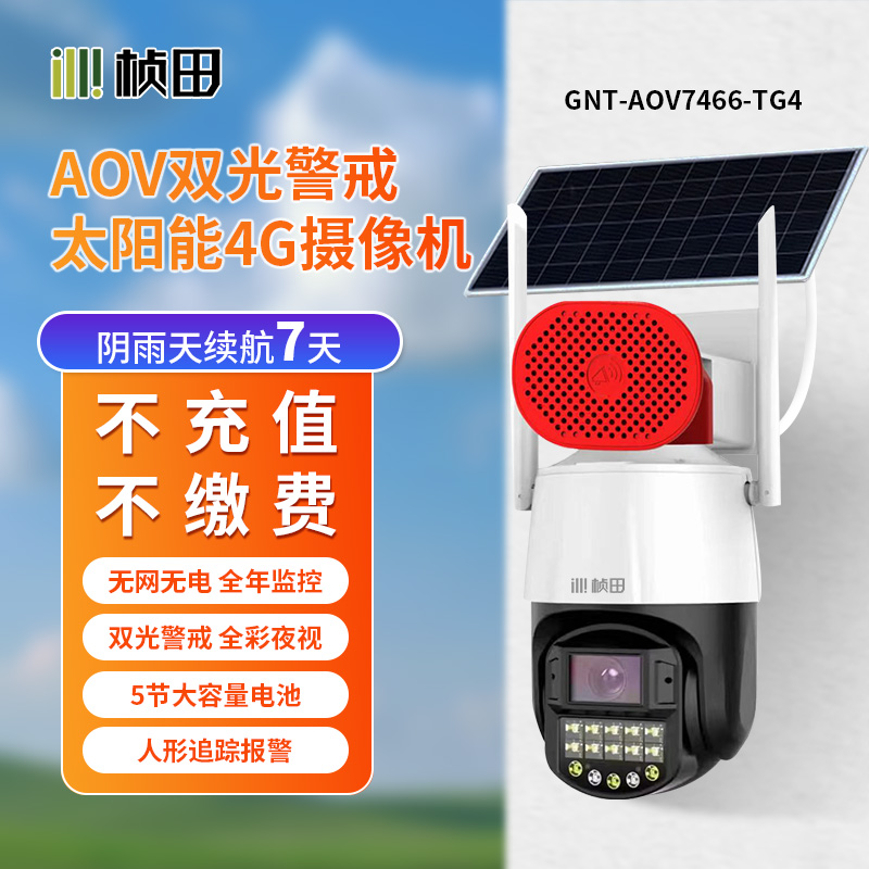 桢田 AOV7466-TG4 400万太阳能微功耗4.2寸4G免流量球机监控头