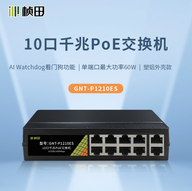 桢田GNT-P1210ES 10口千兆PoE交换机塑铝外壳(买十送一)
